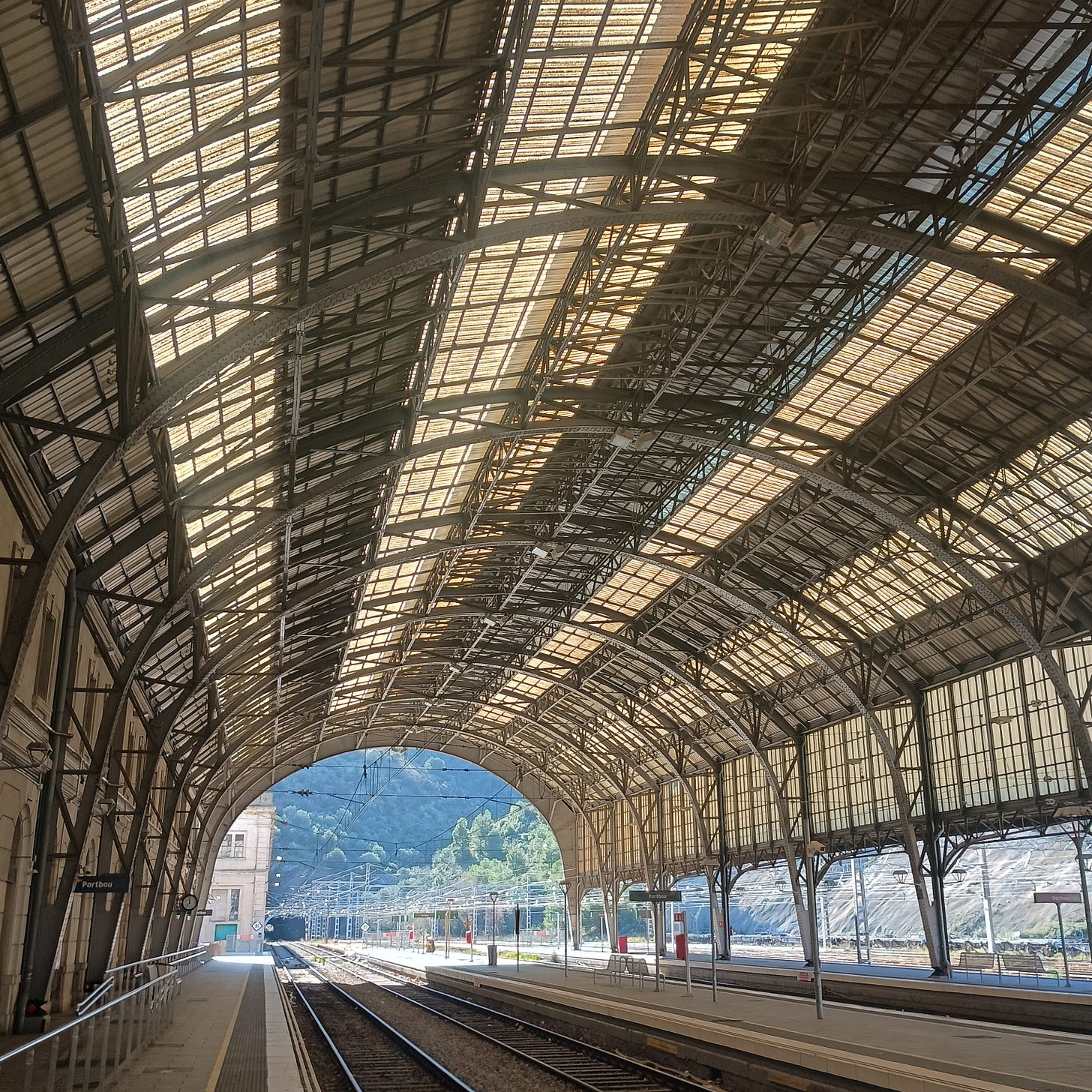 In truth, the station is the reason that Portbou exists. There is no agriculture, no fishing industry, and no tourism here. The station has always been the focal point and economic driver of the community. It was inaugurated in 1878 although the current building was installed in 1929, whose vast iron and glass canopy was designed by Joan Torres i Guardiola, known as the Catalan Eiffel, for the Barcelona International Exposition in 1929. The reason for the incongruous size of the station is that all trains, including freight trains using the Mediterranean Corridor, have to stop here to either change from the Iberian track gauge into the standard gauge, or transfer freight from broad-gauge to standard-gauge wagons (and that’s as far as I’m going to go with the technicalities).